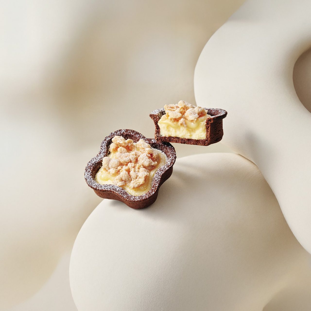 ココアとアーモンドパウダーを練りこんだザクっと香ばしいタルトカップと組み合わせることで、甘さとほろ苦さのコク深い味わいがお楽しみいただけます。【期間限定】2025年10月1日(水)~ ※なくなり次第終了