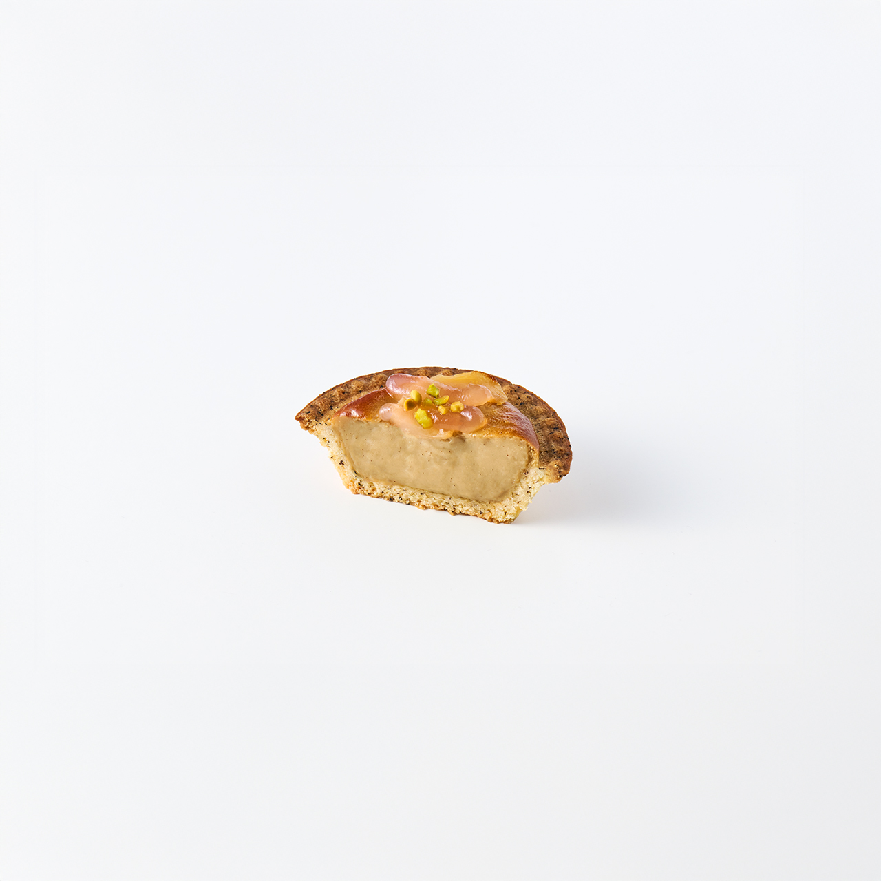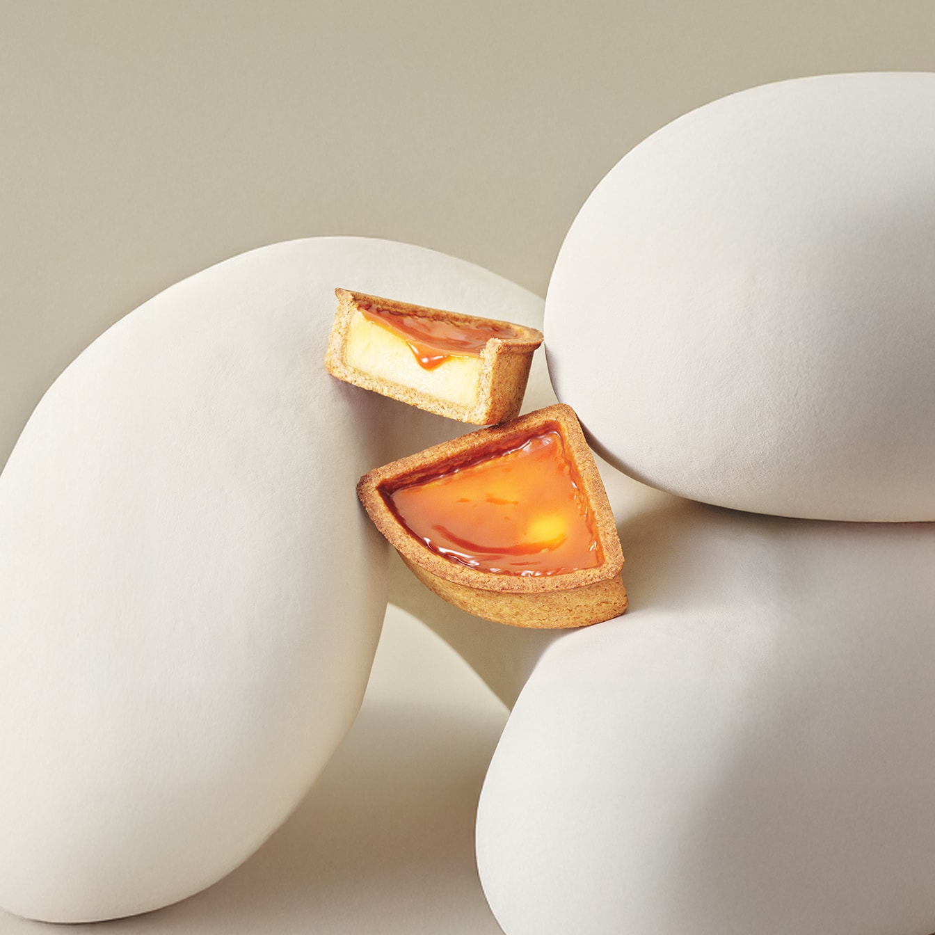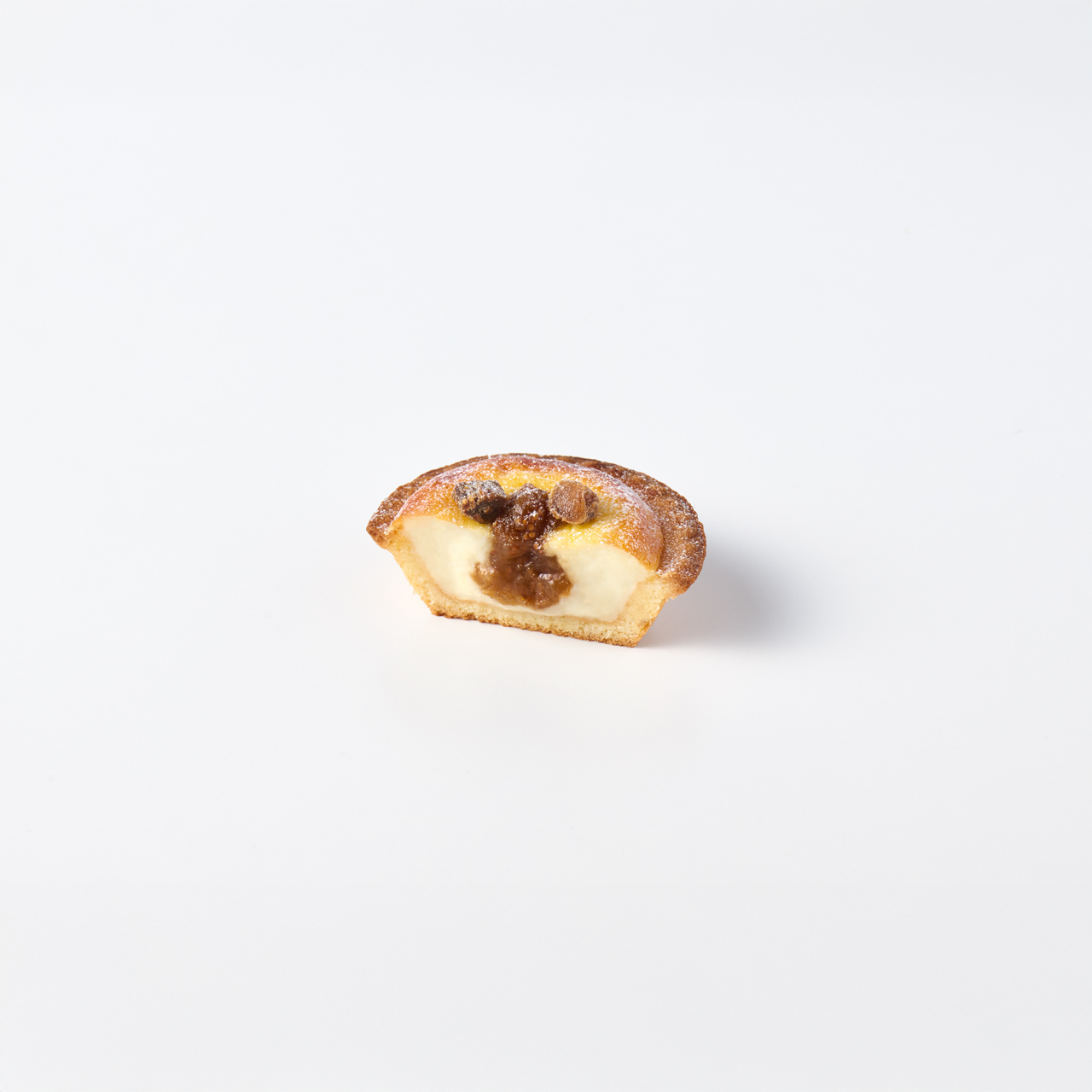 全粒粉を使用したザクザク食感のタルトカップに、濃厚でミルキーなチーズムースを合わせました。こっくりとした甘みと香ばしいキャラメルソースとのバランスをお楽しみください。
