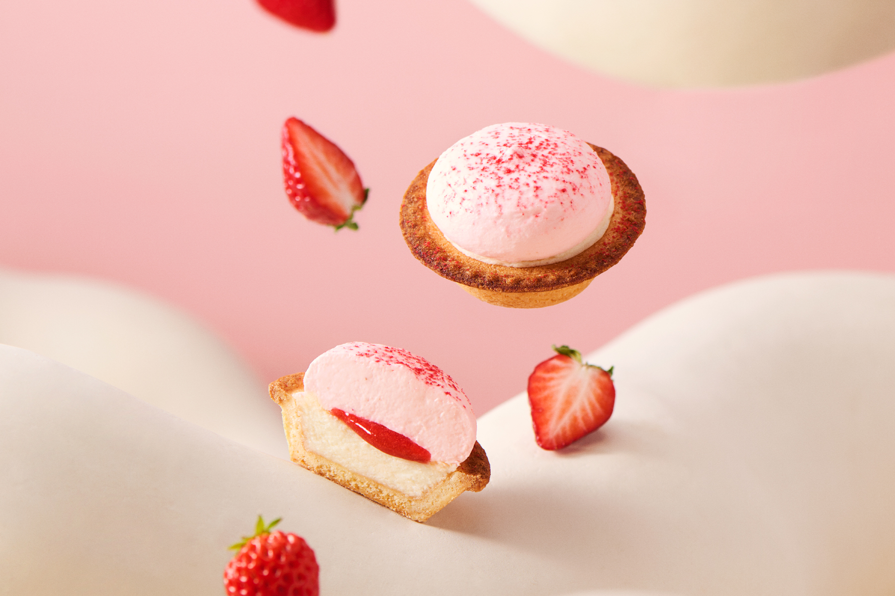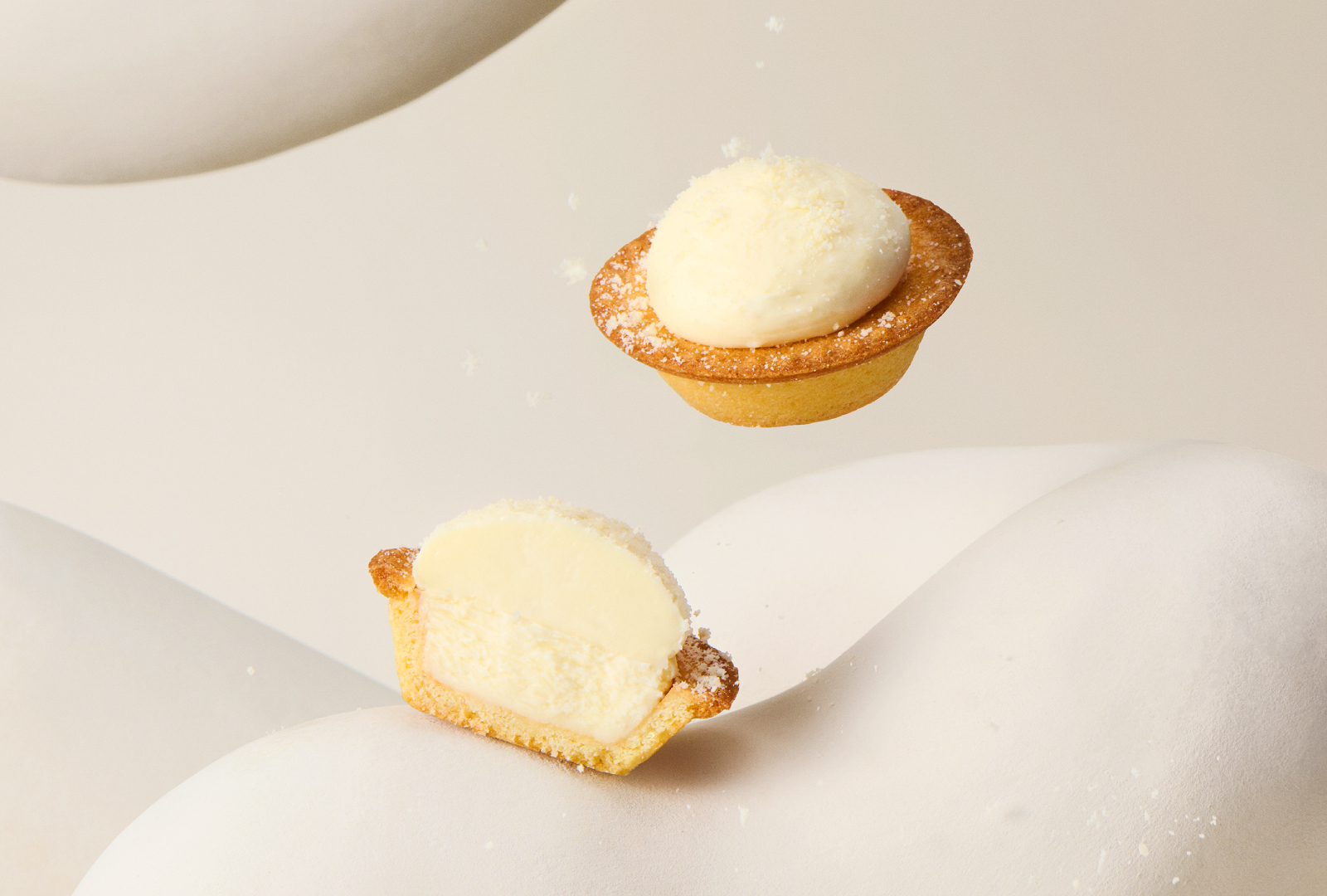 スノードームのようなころっと丸い形のレアチーズムースと、ふわりと焼き上げたチーズムースの2層仕立てのチーズタルト。食べる部分によって変わる食感の違いもお楽しみいただけます。
