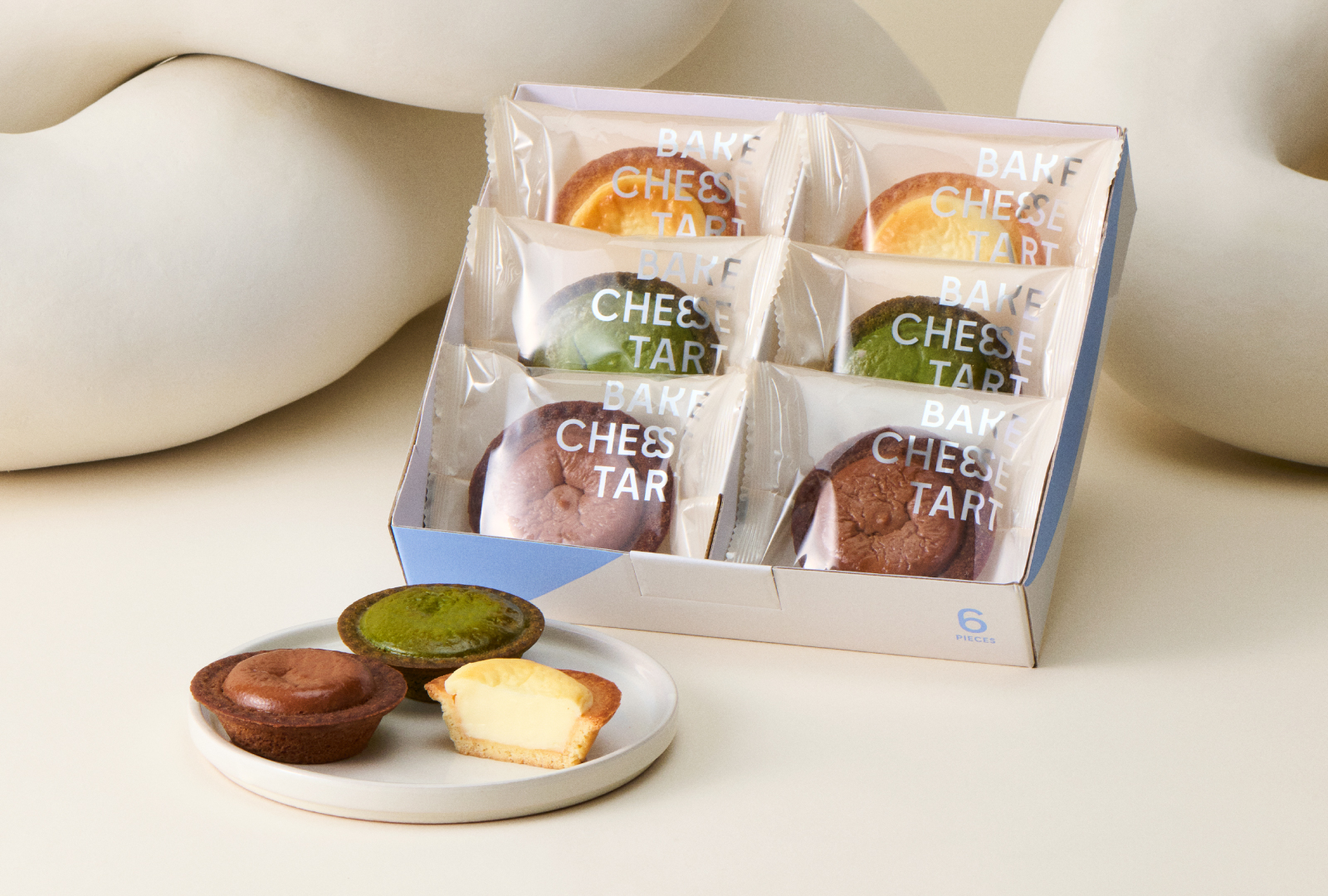 ●チーズタルト6P BOX〈オリジナルチーズタルト2個・抹茶チーズタルト2個・チョコレートチーズタルト2個〉:1,966円(税込)/ 箱