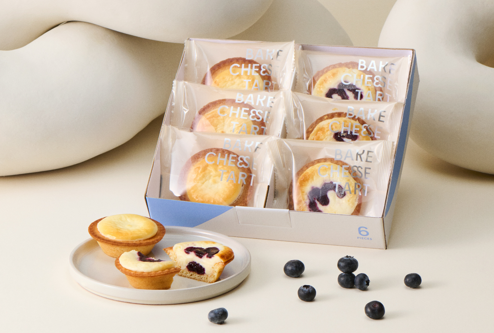 ●チーズタルト6P BOX〈オリジナルチーズタルト3個・ブルーベリーチーズタルト3個〉:1,944円(税込)/ 箱
